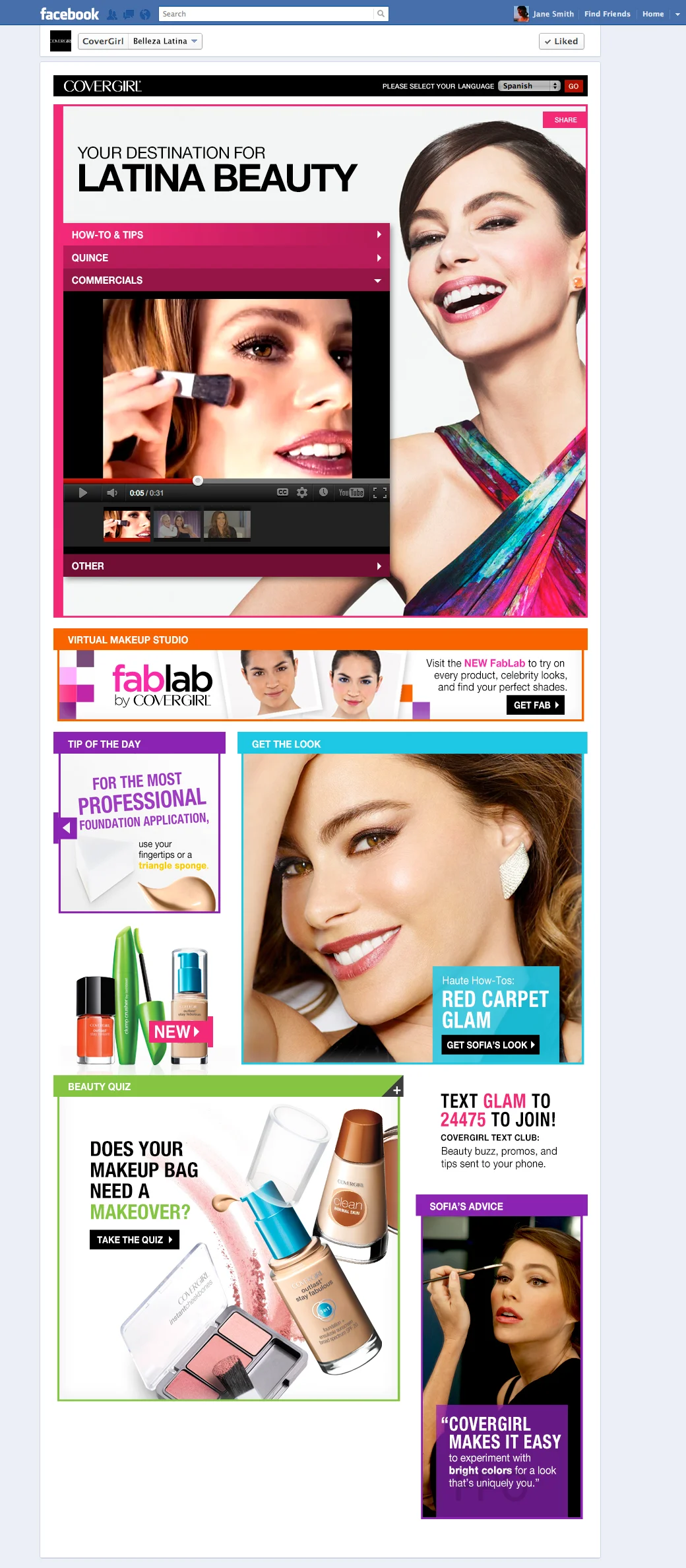 My task was to develop all content and overall design/look-and-feel for new COVERGIRL Facebook tabs, that are also optimized for mobile. So I complemented compelling messages with colorful, clean designs. The user-friendly tab encourages interaction. I've enabled sharing capabilities to influence her Facebook friends to join the conversation and “Buy Now” functionality.